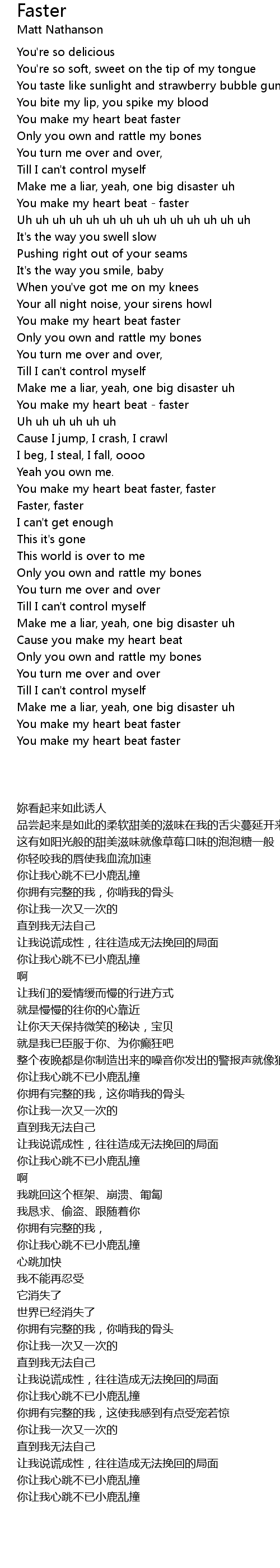 You make my heart beat faster, faster |
