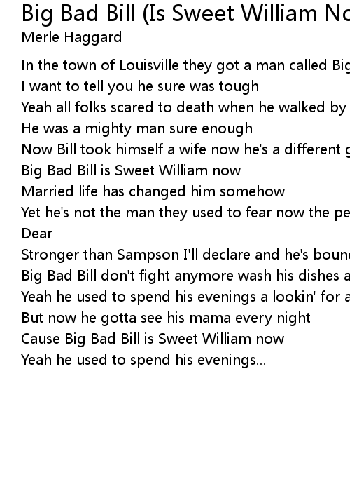 Big Bad Bill don't fight anymore wash his dishes and he might sweep the floor |