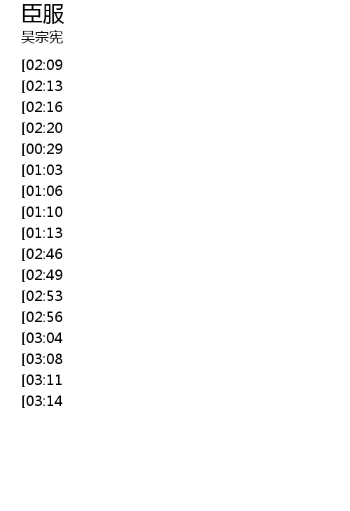 | [03:48][03:14][01:50] | 我想你已经臣服在爱情的手里 |