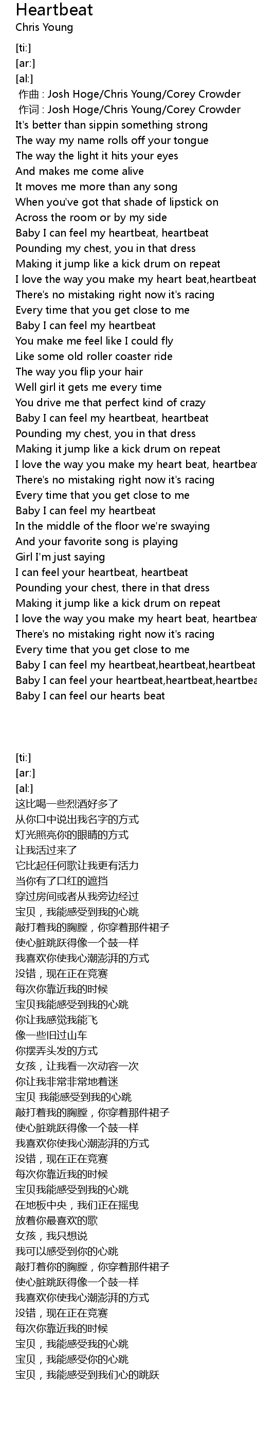 | [00:37.13] | Baby I can feel my heartbeat, heartbeat |