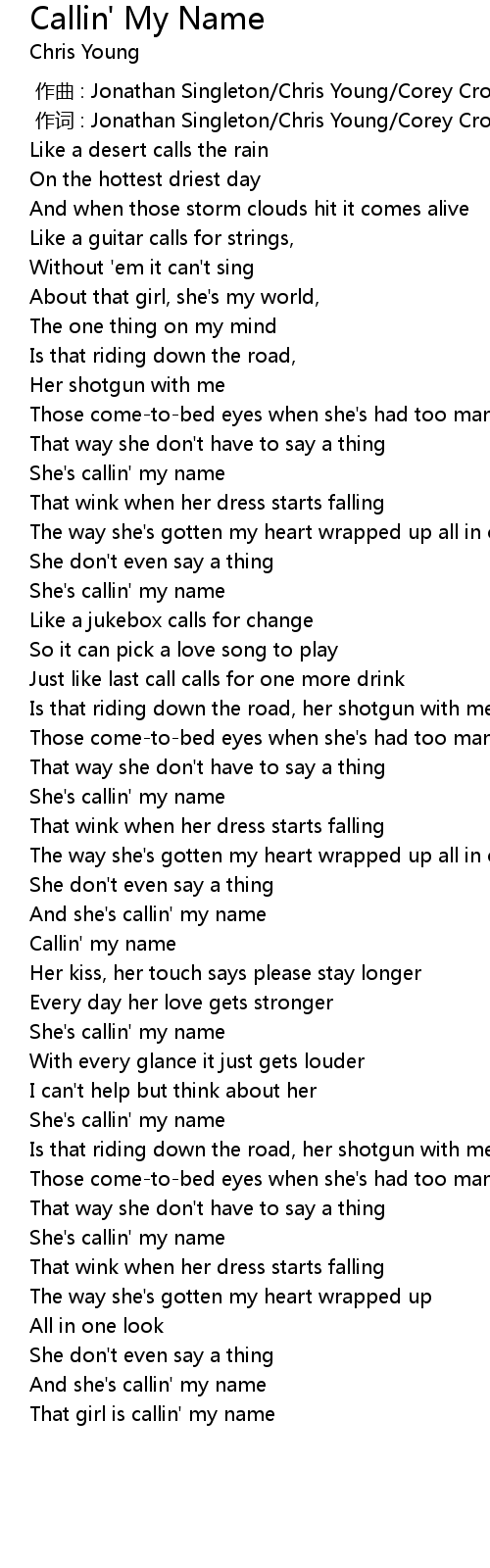 | [01:50.10] | Callin' my name |