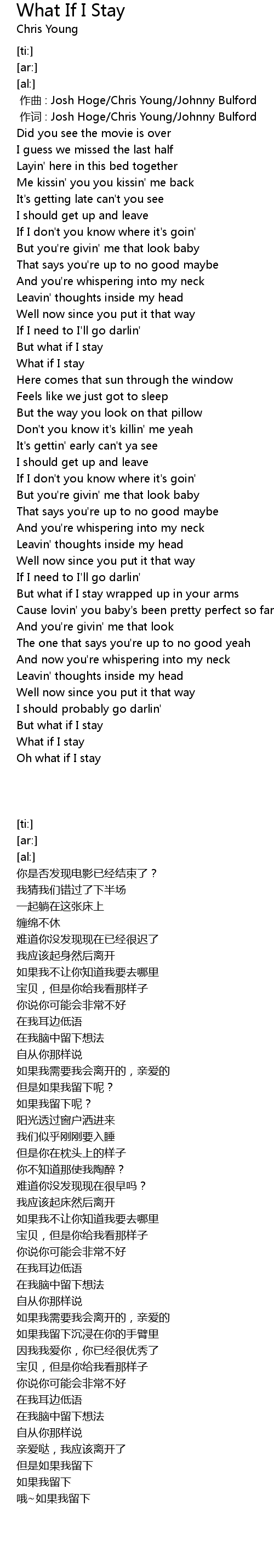 | [00:01.00] | zuo ci : Josh Hoge Chris Young Johnny Bulford |