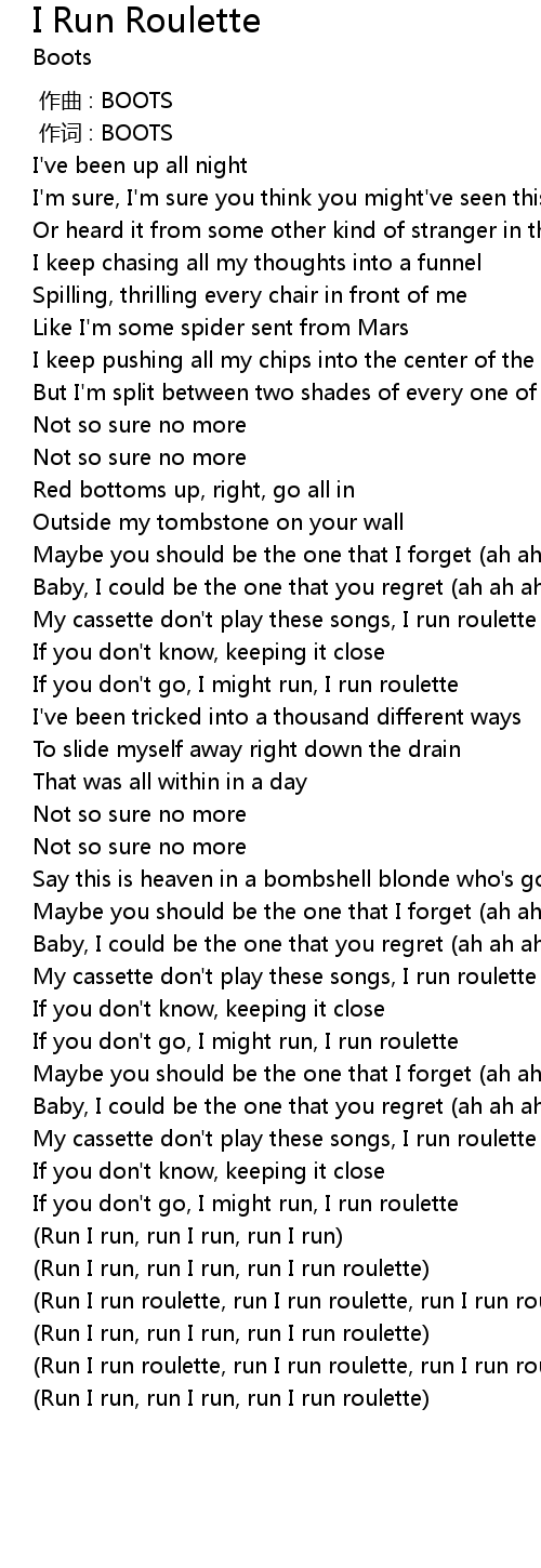 | [02:57.81] | Run I run roulette, run I run roulette, run I run roulette |