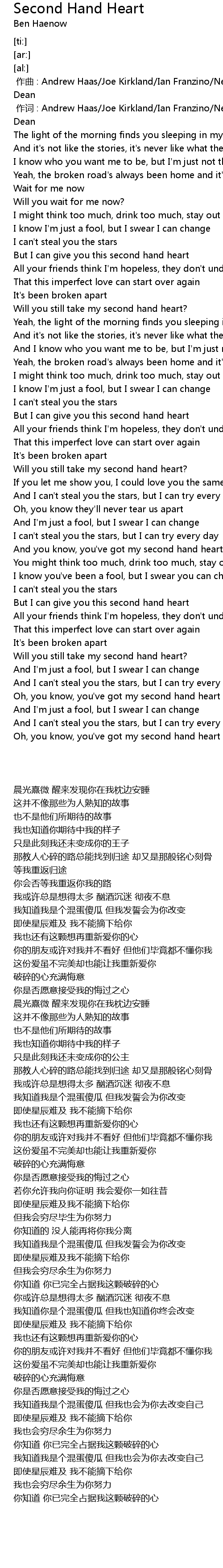 | [02:45.72] | And you know, you've got my second hand heart |