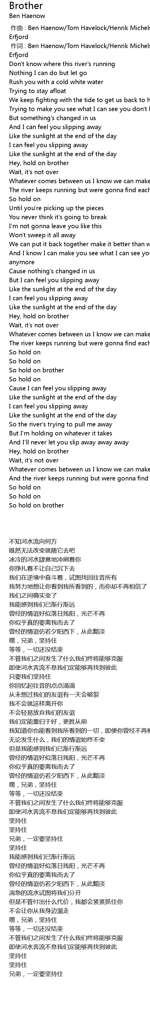 | [00:01.00] | zuò cí : Ben Haenow Tom Havelock Henrik Michelsen Edvard F rre Erfjord |