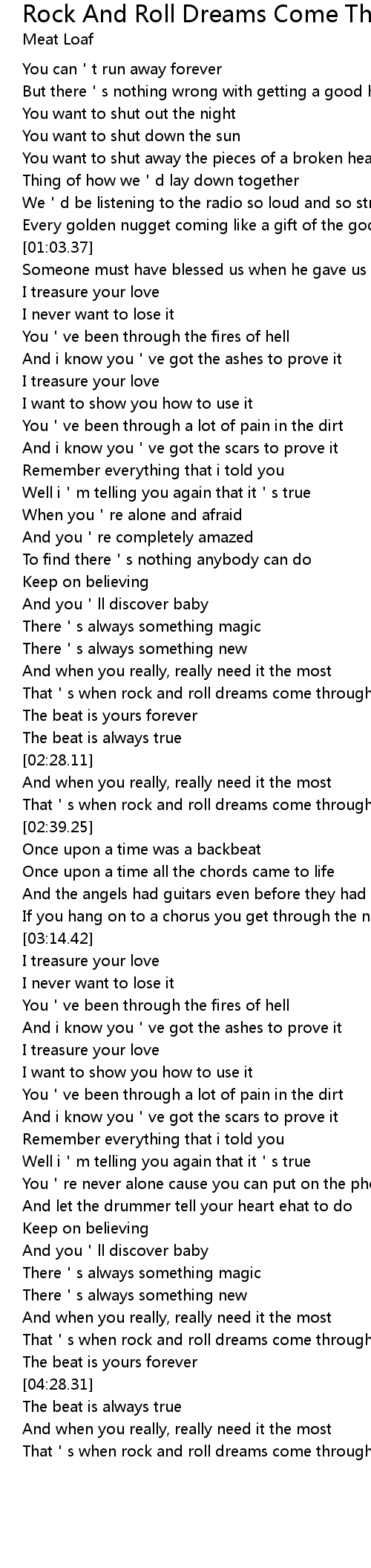 | [02:33.60] | That s when rock and roll dreams come through... for you... |