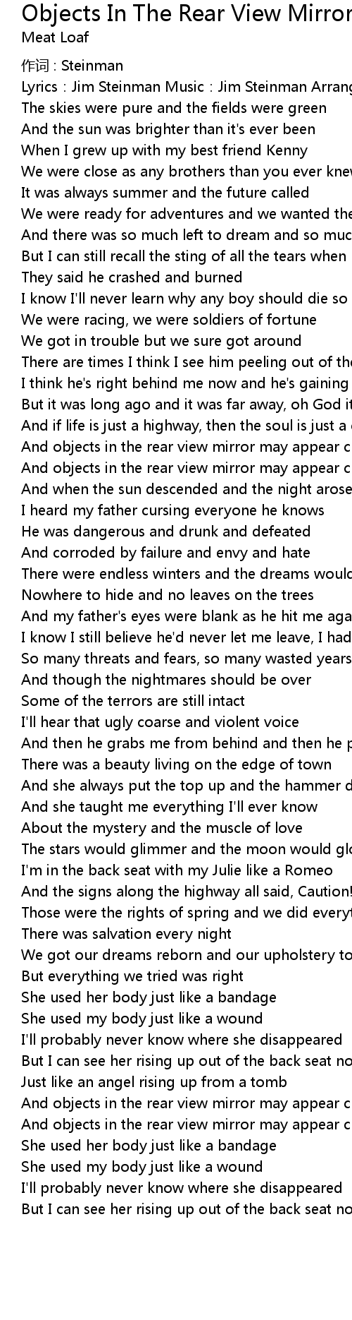 | Song | Objects In The Rear View Mirror May Appear Closer Than They Are (Album Version) |