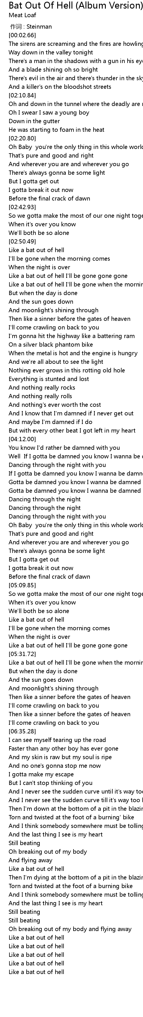 | [03:03.13] | Like a bat out of hell I' ll be gone gone gone |