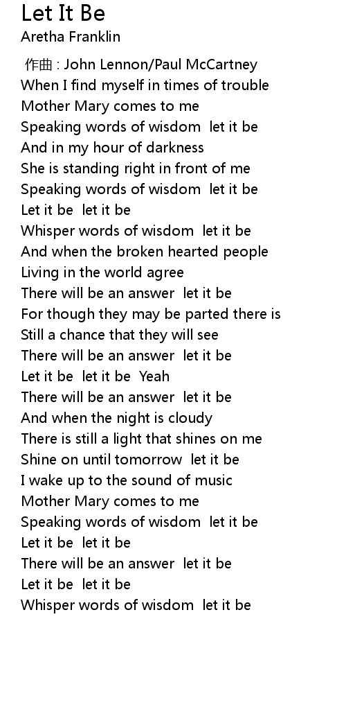 | [01:00.89] | There will be an answer let it be |