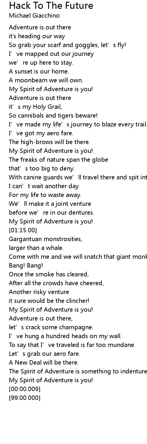 | [00:43.00] | My Spirit of Adventure is you! |