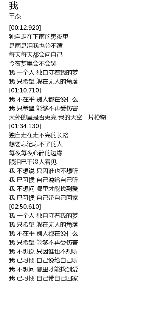 | [03:43.970] | 我 已习惯 自己带自己回家 |