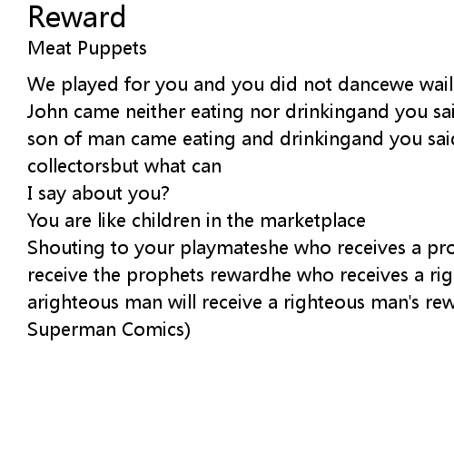 Shouting to your playmateshe who receives a prophet because he is aprophet will receive the prophets rewardhe who receives a righteous man because he is arighteous man will receive a righteous man's reward(a year's subscription to Superman Comics) |