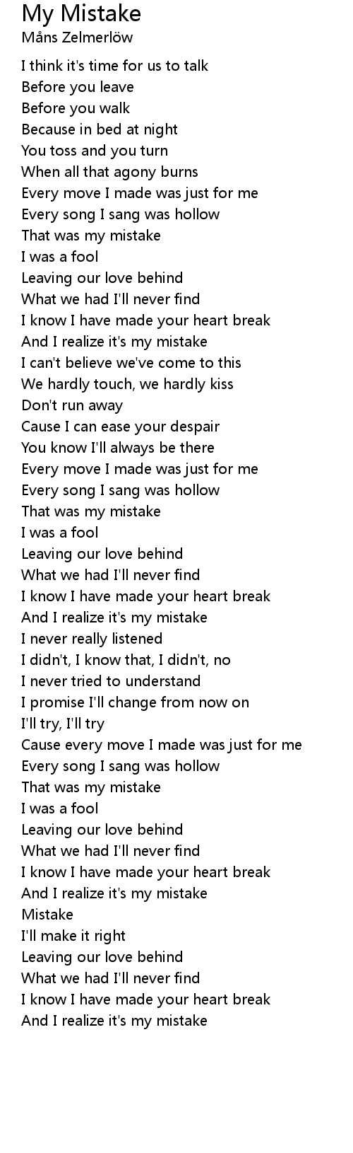 And I realize it's my mistake |