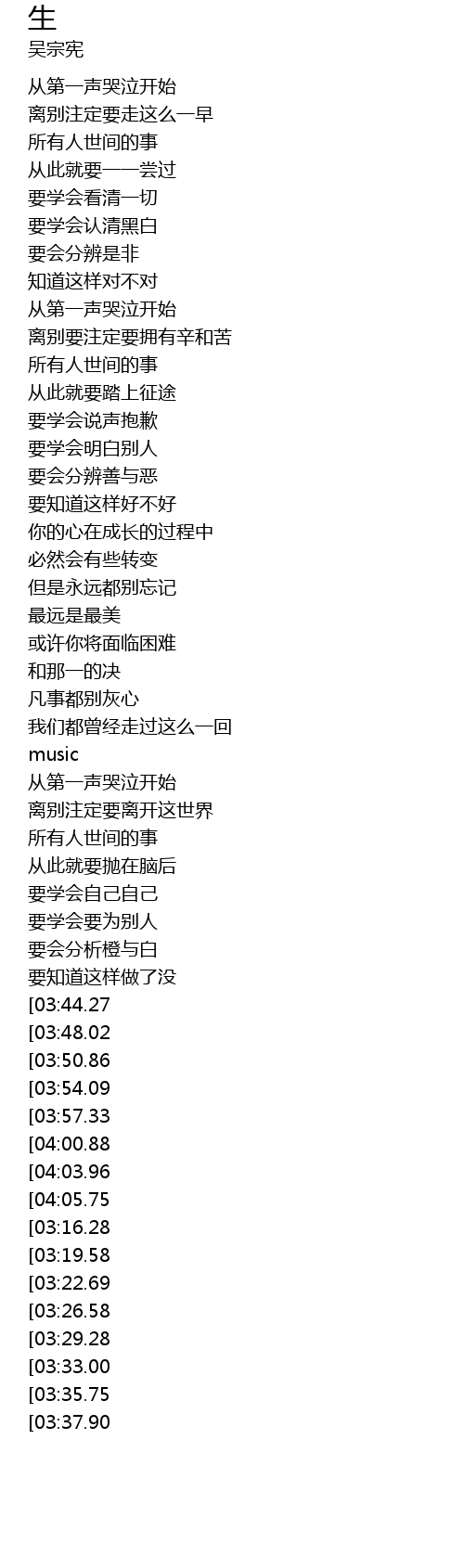 | [00:42.62] | yao xue hui ren qing hei bai |