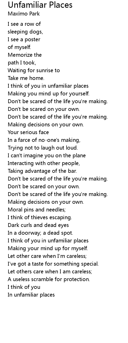 In unfamiliar places |