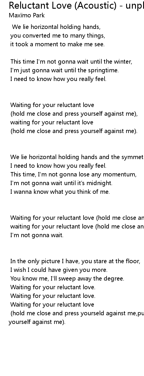 Waiting for your reluctant love (hold me close and press yourseld against me),