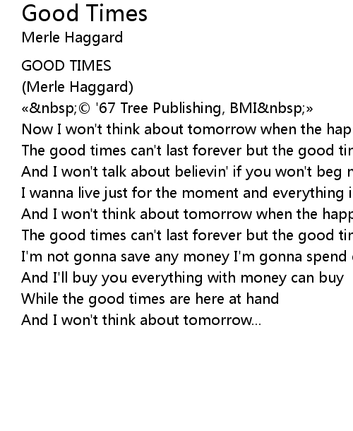 | The good times can' t last forever but the good times are here today | |