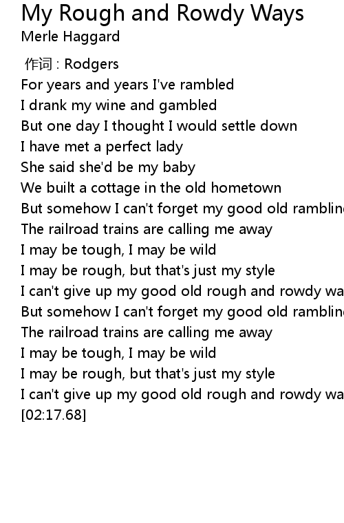 | [02:16.03] | I can't give up my good old rough and rowdy ways |