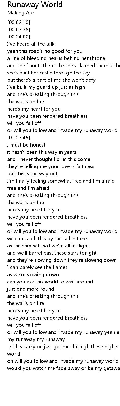 oh will you follow and invade my runaway world |