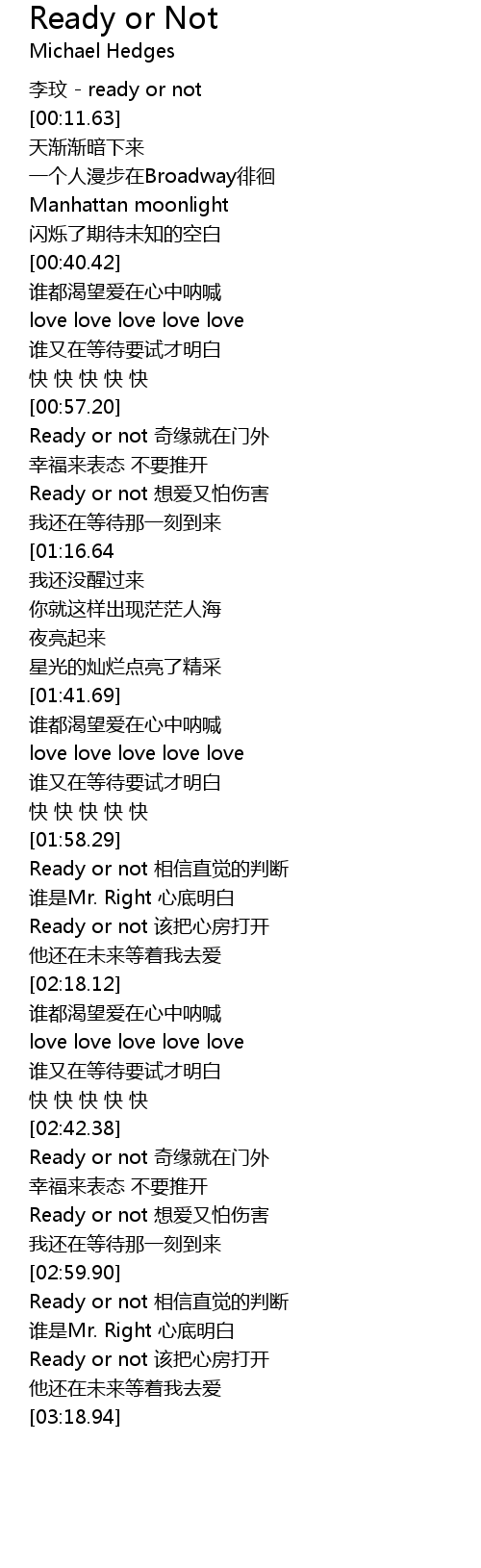 | [03:00.38] | Ready or not 相信直觉的判断 |