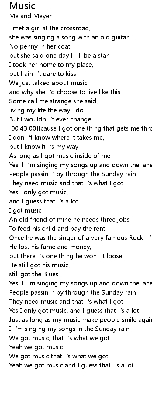 | [03:06.00] | Yeah we got music and I guess that‘s a lot |