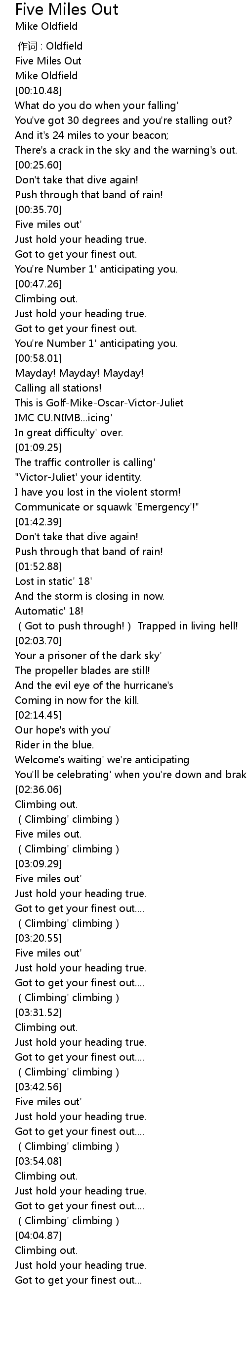 | [00:19.55] | And it's 24 miles to your beacon; |