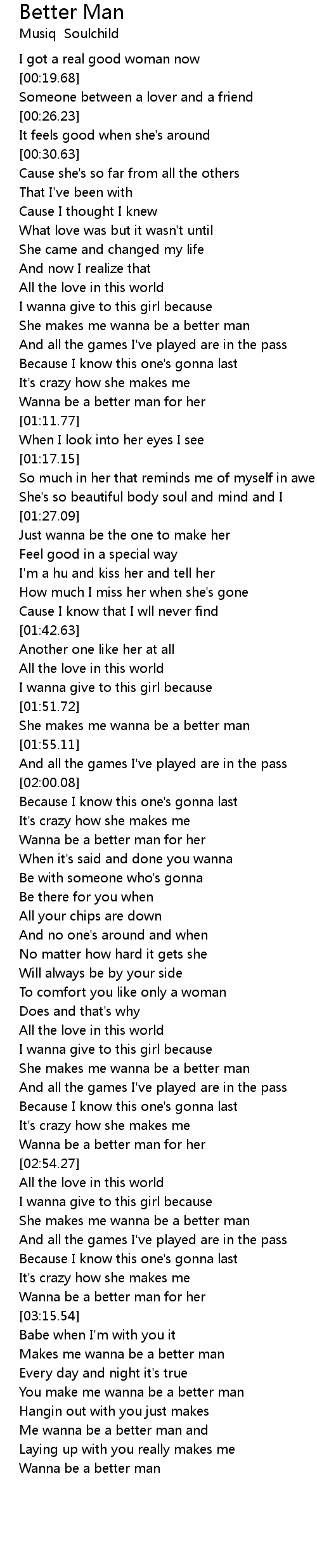 Me wanna be a better man and |