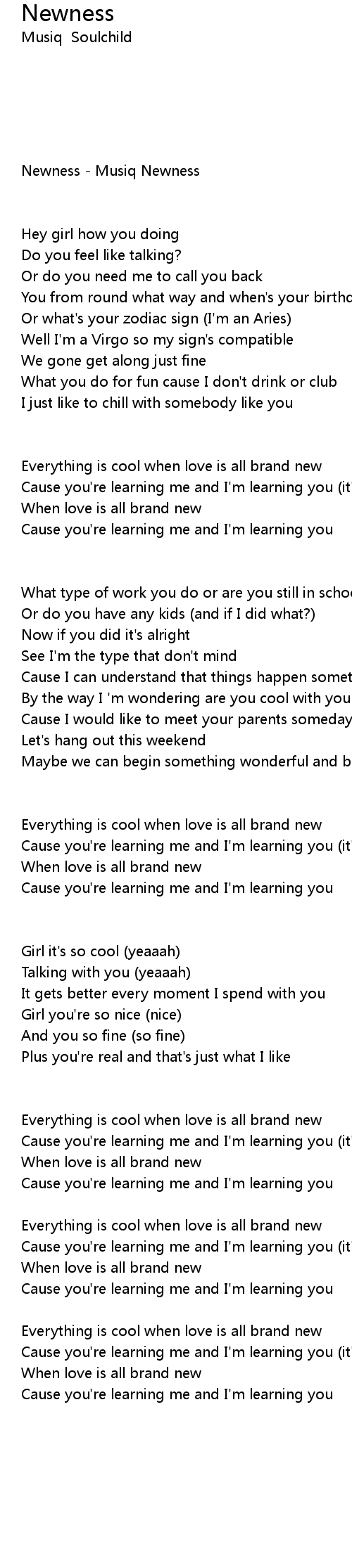 | [00:55.78] | Cause you're learning me and I'm learning you (it's cool) |