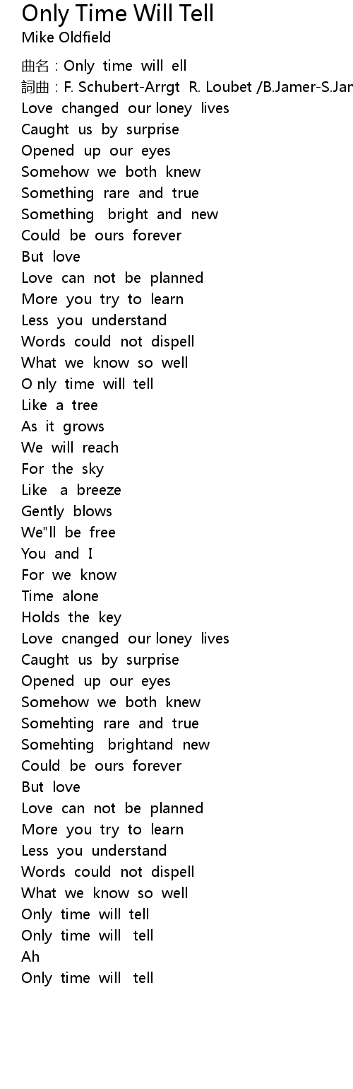 | [00:03.01] | 曲名:Only time will ell |