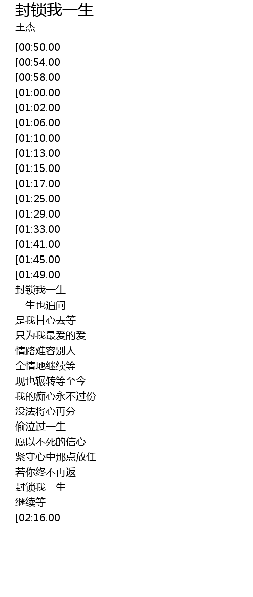 | [01:51.00] | 封锁我一生 |