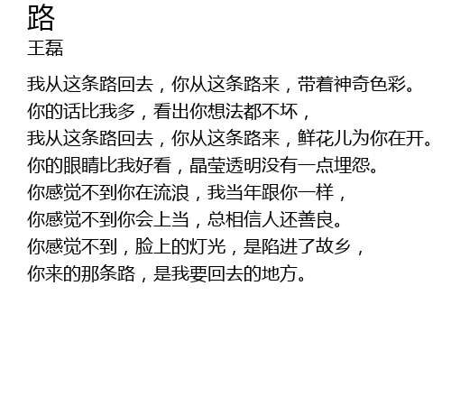 | wo cong zhe tiao lu hui qu, ni cong zhe tiao lu lai, xian hua er wei ni zai kai. | |