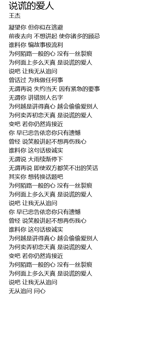 | [02:53.410] | wèi hé miàn shàng duō me tiān zhēn shì shuō huǎng de ài rén |