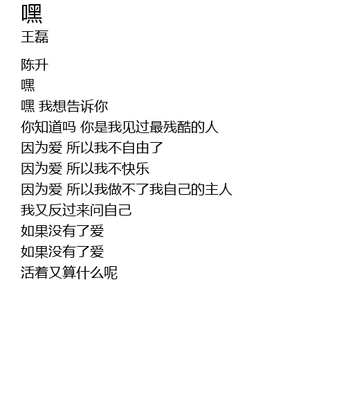 | [00:47.26] | hēi wǒ xiǎng gào sù nǐ |