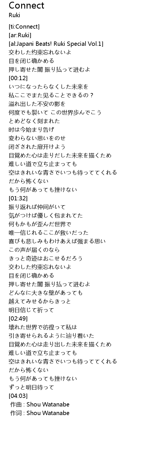 | [00:00.00] | 作词 : Shou Watanabe |
