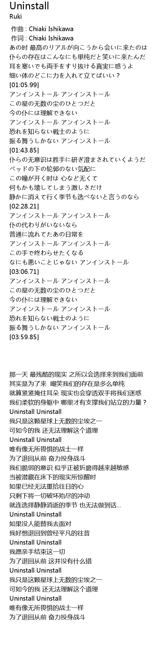 | [03:47.03] | 振る舞うしかない アンインストール |