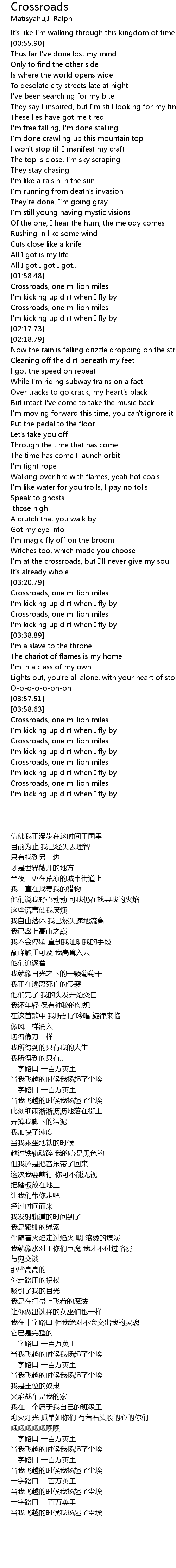 | [01:59.16] | Crossroads, one million miles |