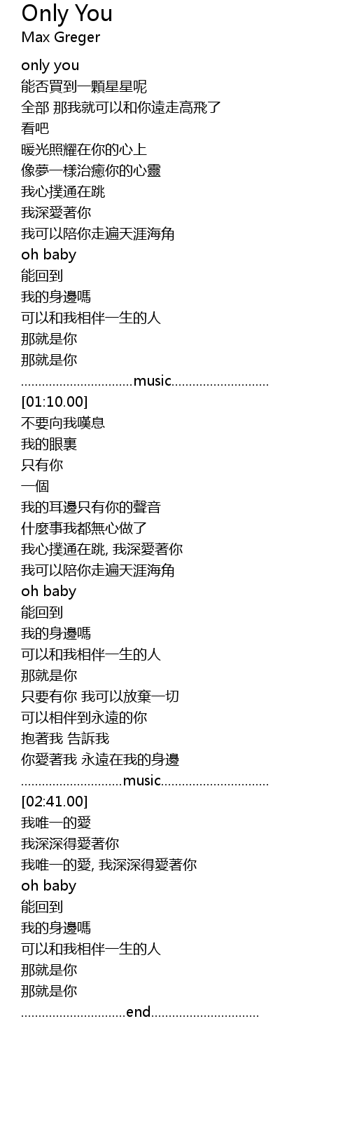 | [02:47.49] | 我唯一的愛, 我深深得愛著你 |