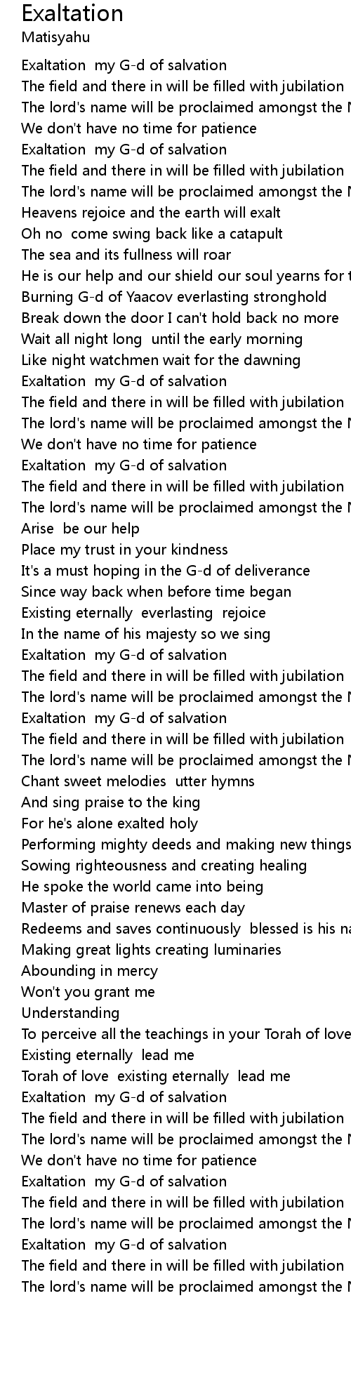 Exaltation my G-d of salvation |