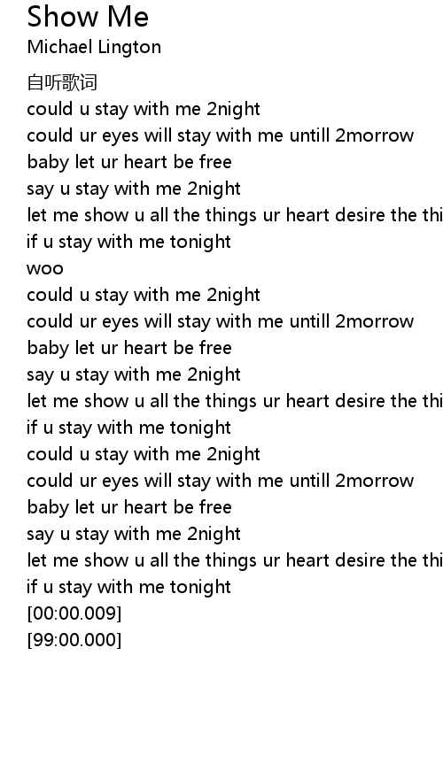 | [00:56.68] | could ur eyes will stay with me untill 2morrow |