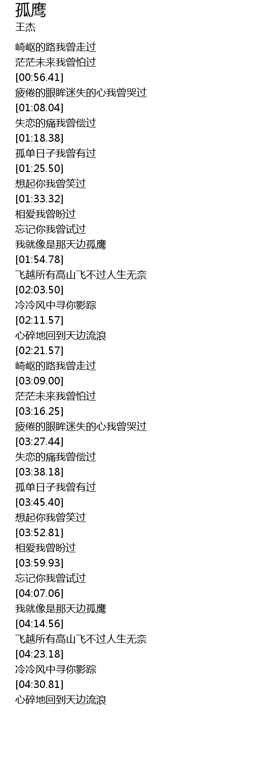 | [01:49.77] | 我就像是那天边孤鹰 |
