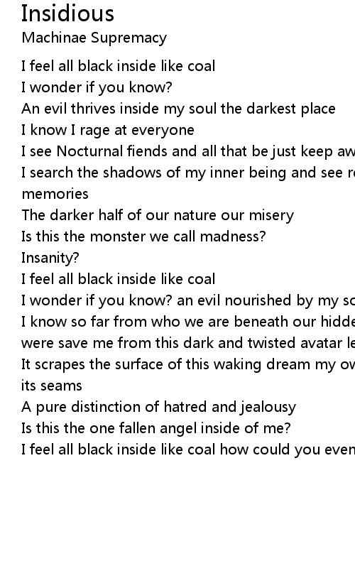 I wonder if you know? an evil nourished by my soul the darkest place |