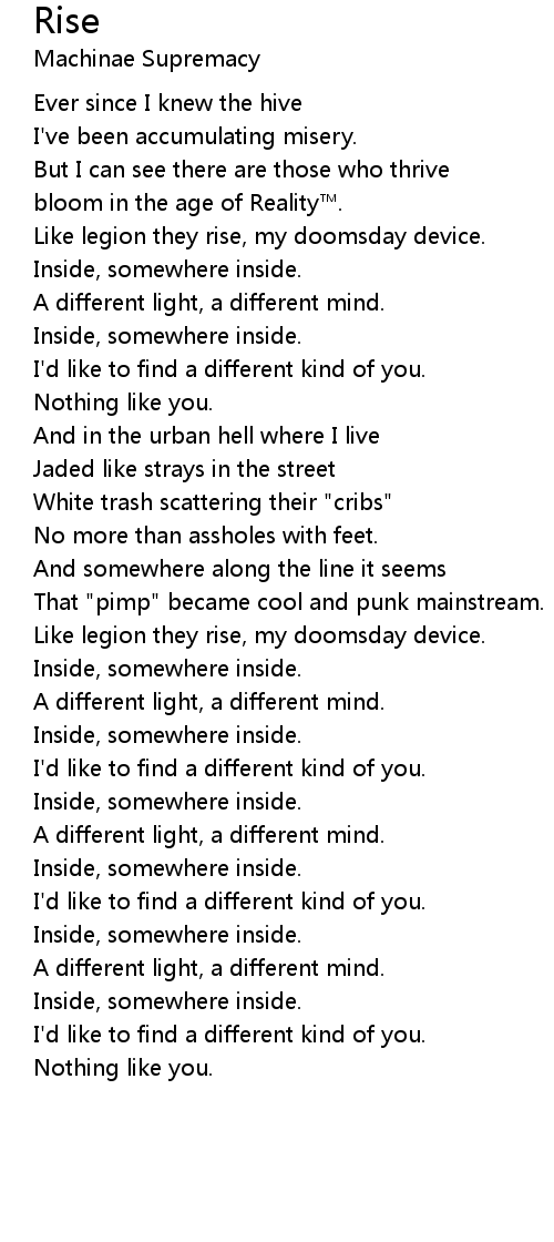 | Like legion they rise, my doomsday device. | |