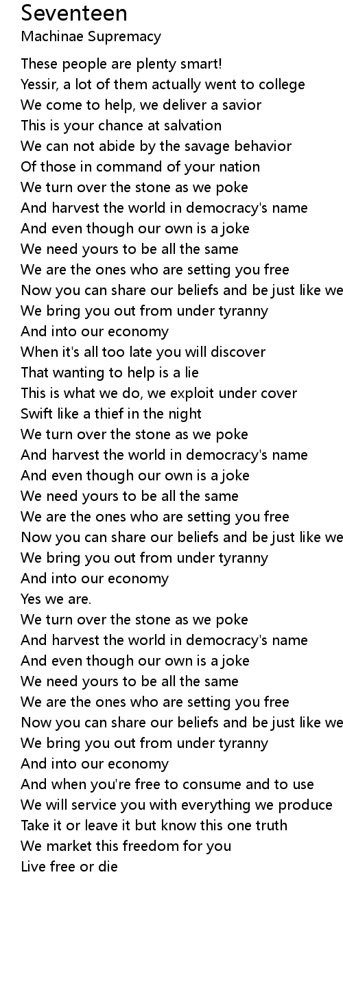 And harvest the world in democracy's name |