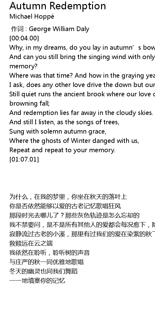 | [00:13.72] | Why, in my dreams, do you lay in autumn’s bowered leaves |