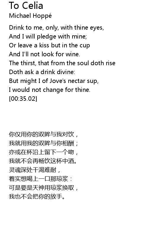 | [00:06.58] | Drink to me, only, with thine eyes, |