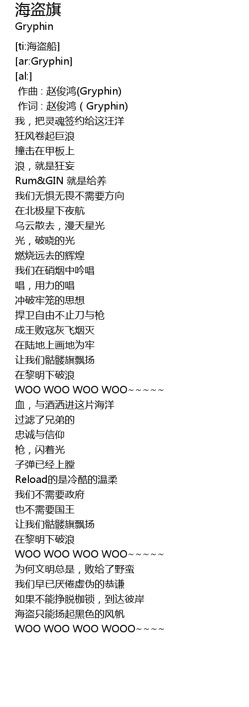 | [01:17.94] | 让我们骷髅旗飘扬 |