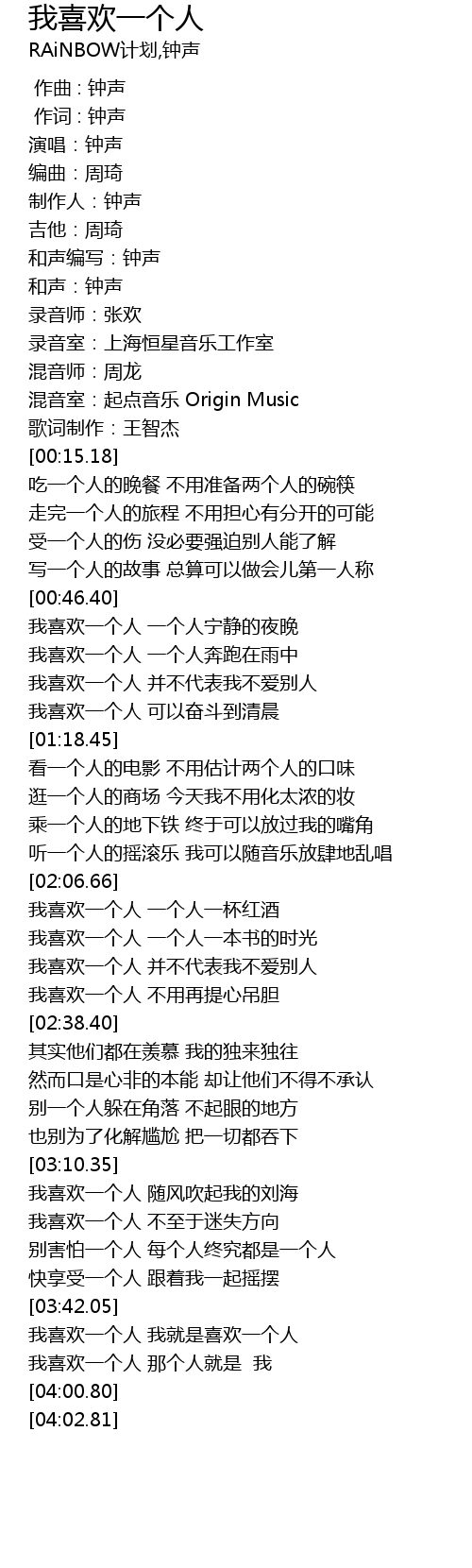 | [03:42.46] | 我喜欢一个人 我就是喜欢一个人 |