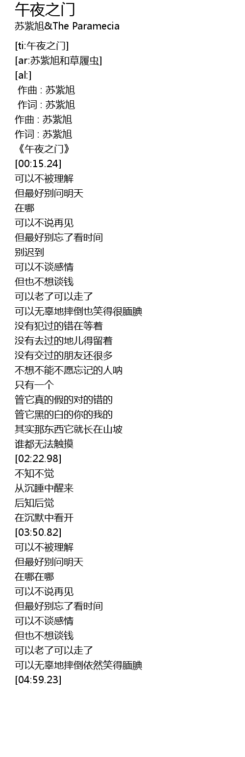 | [00:03.95] | 作曲 : 苏紫旭 |