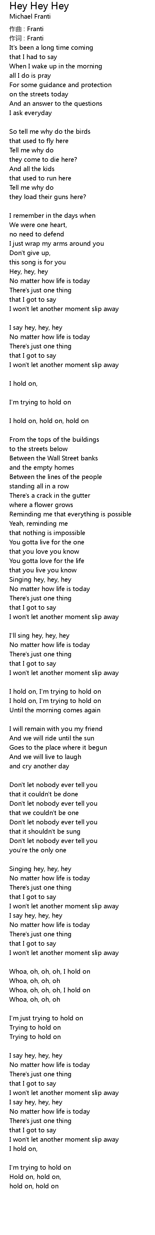 | I say hey, hey, hey | |