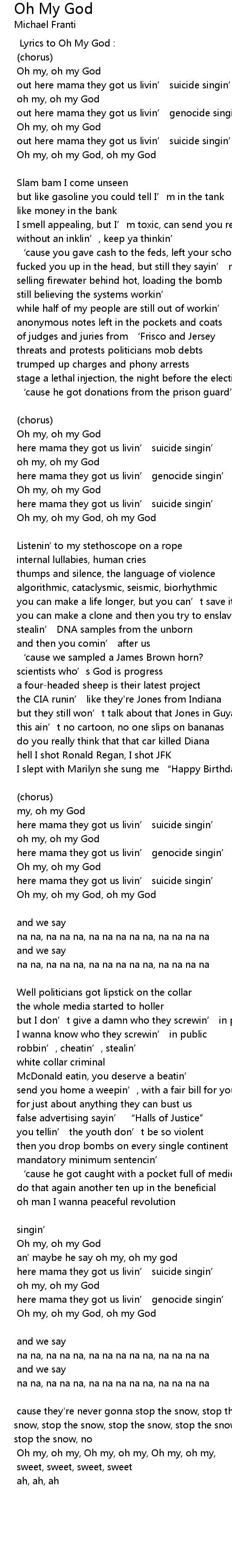 | Lyrics to Oh My God : | |
